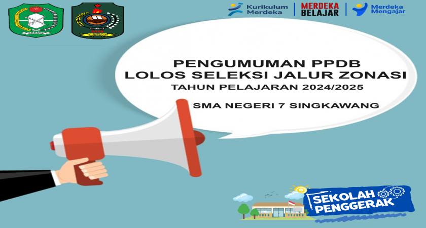 Bagi Calon Peserta Didik Baru yang dinyatakan lolos mendaftar melalui jalur ZONASI untuk datang ke SMAN 7 Singkawang melakukan Daftar Ulang (Melaporkan Diri) mulai tanggal 24-26 Juni 2024 dari pukul 08.00 s/d 13.00 WIB.